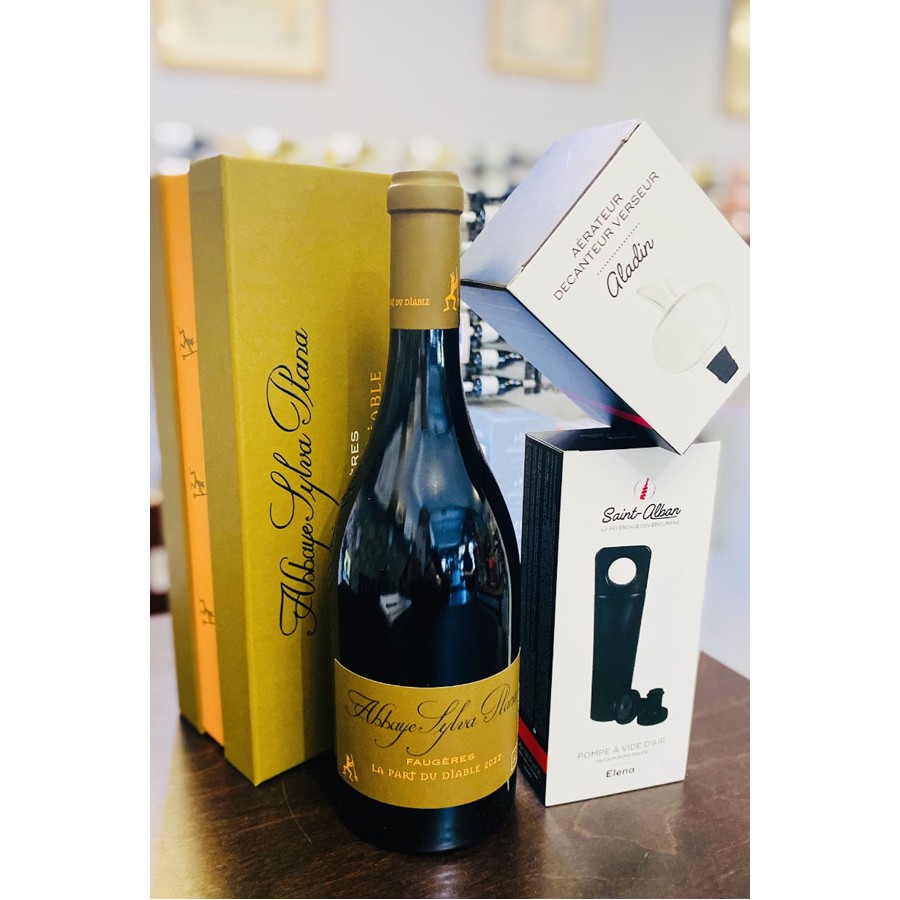 Composition du coffret : 1 Part du diable, 1 Aérateur de vin, et une pompe vide d’air avec ses 2 bouchons.
